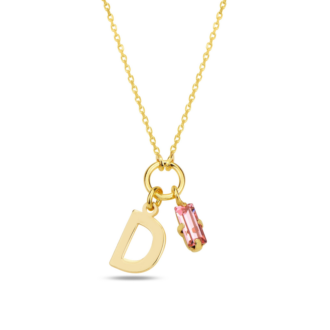 SPES PINK GOLD SWAROVSKI D LETTER NECKLACE
